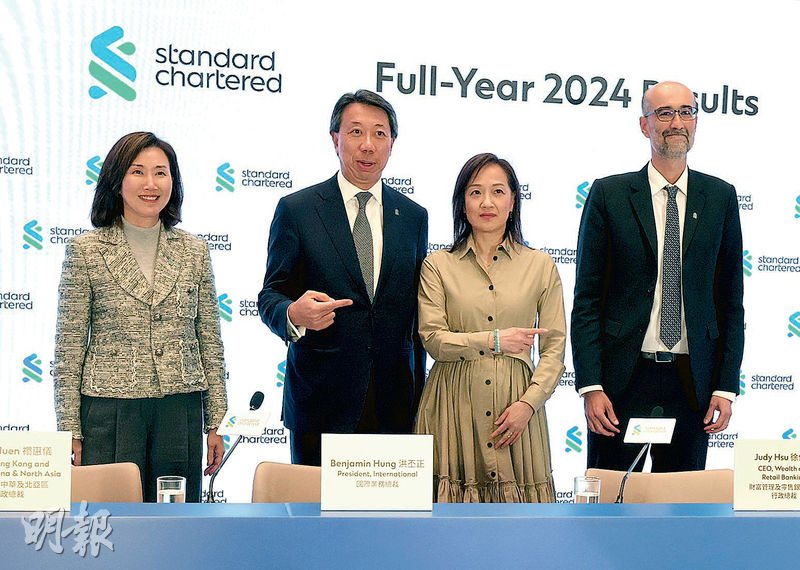 另外,高維德指渣打出售部分零售業務,也會影響淨利息收入,不過銀行更着重平均有形股本回報(RoTE),若有業務回報未達適合水平,便會考慮回收資本。洪丕正指出,去年經營收入增長14%,但風險加權資產(RWA)按年持平,對資本產生相當有幫助,去年底普通股權一級資本比率14.2%,高於13至14%目標範圍,因此可以支持更大額回購。渣打計劃自去年至明年向股東累計回饋至少80億美元,現時已經公布分派49億美元,進展良好。