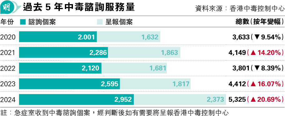 去年5325宗中毒 疫後新高