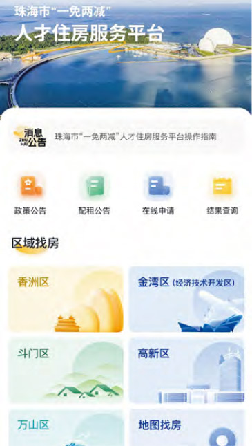【明報專訊】珠海市早前公布《新來珠青年人才住房「一免兩減」政策措施》,為新到珠海創業就業的青年人才提供最長3年「一免兩減」住房保障,即第一年免費住、第二年僅需付30%租金、第三年付50%租金。政策支持已婚者以家庭為單位申請,港澳及外籍人才亦可受惠。