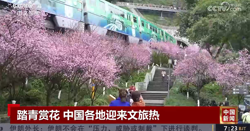 在重慶,單軌列車穿梭在粉紅梅花海,優美的春日畫卷吸引絡繹不絕的遊客。在廣東廣州,濱江步道上黃花風鈴木爭相盛開,當地結合花期舉辦的各式文化活動豐富了人們的觀賞體驗。