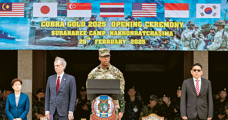 《聯合報》報道,美軍25日在「金色眼鏡蛇演習」facebook官方帳號貼文表示,來自美國、泰國、日本、韓國、印尼、馬來西亞、台灣等超過200名參演官兵,齊聚泰國蘇拉納雷營地,迎接2025年金色眼鏡蛇演習。