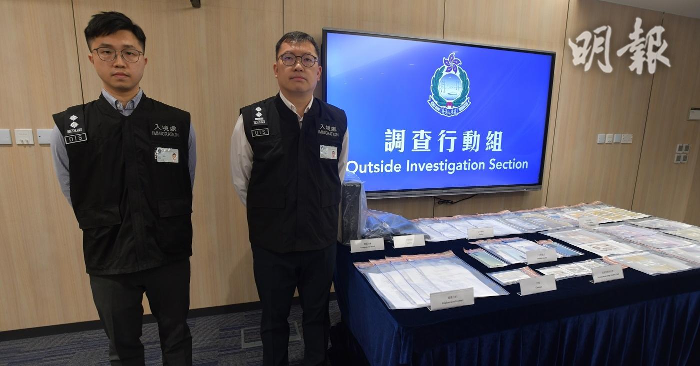另外,現場有一名持有逾期往來港澳通行證的人士,入境處人員於其電話發現3張僞造身份證的相片,警誡下,該人士承認在香港逾期逗留、非法工作、管有懷疑僞造身份證,將會被落案起訴。調查期間,入境處人員發現該公司電腦記錄存有22張懷疑僞造身份證的副本,以及涉案人士的受僱記錄。入境處人員遂檢走電腦及文件,作進一步調查,不排除會更多人被捕。