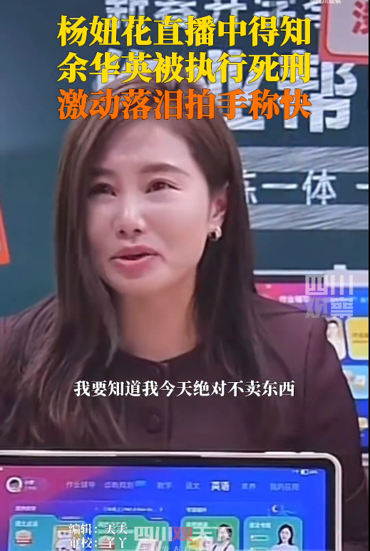 經最高法院核准,貴州省貴陽市中級法院2月28日依照法定程序對拐賣17名兒童的罪犯余華英執行死刑。余華英拐賣兒童案受害人之一的楊妞花,在視頻直播時得知消息激動落淚,稱「要是知道(余華英被執行死刑)我今天肯定不賣東西,我要好好發一條視頻」。
