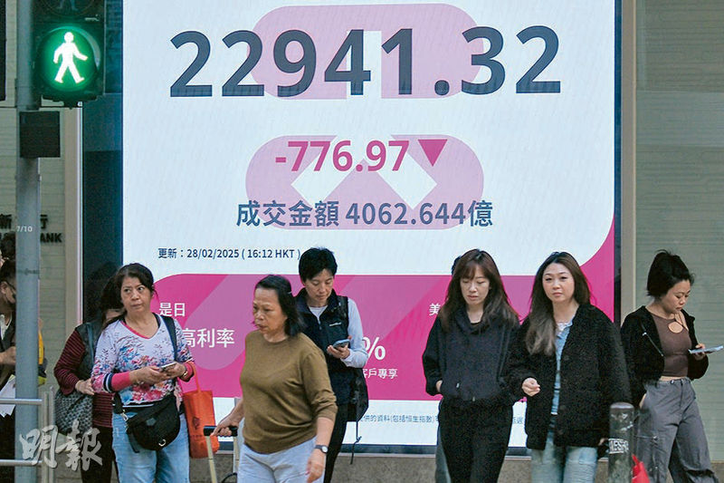 關稅衝擊 港股跌776點失守23000 政治局重申穩股樓未扭跌勢 科網AI晶片股重創