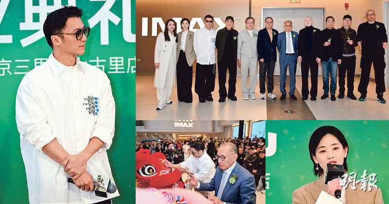 【明報專訊】相隔25年再在港開騷的謝霆鋒,將於4月底在啟德體育園主場館舉行3場演唱會,近日雖忙於積極備戰及專心練歌,但昨日也抽空到北京,出席老闆楊受成投資的英皇電影城北京三里屯旗艦店開幕禮。心情大靚的霆鋒與楊受成一起主持醒獅點睛儀式,成龍亦專程從美國飛抵北京出席,還有內地三大名導張藝謀、馮小剛及管虎,難得聚首一堂,加上影帝葛優、張國立及影后劉雅瑟,場面熱鬧。 歌影兩棲的霆鋒表示多年來專注電影工作,發掘不同的可能,電影城是協助他達成夢想的地方。