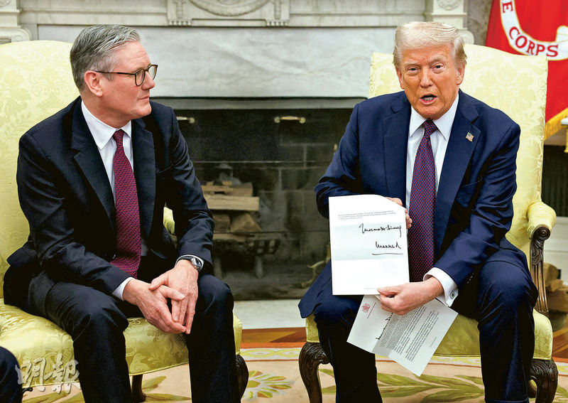 【明報專訊】英國首相施紀賢周四到訪美國白宮跟總統特朗普會面,兩人其後舉行聯合記者會,特朗普稱美英正商討雙邊貿易協議,協議將讓英國避免遭美國加徵關稅。