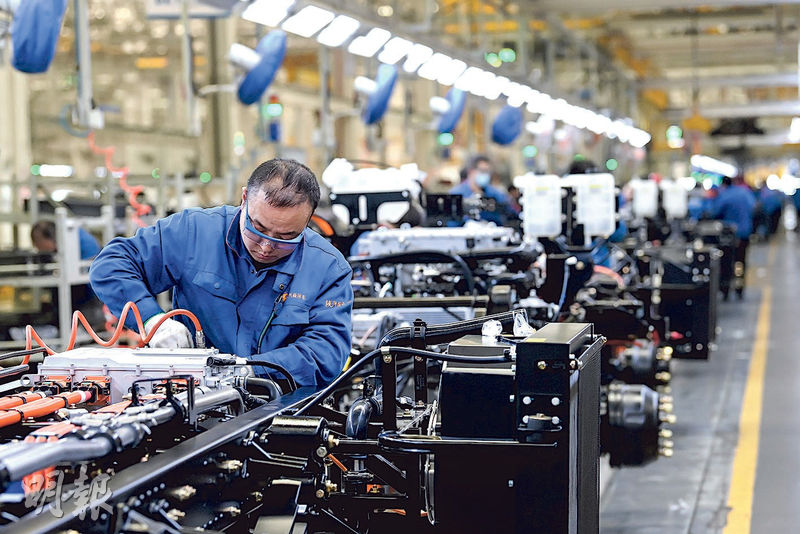 【明報專訊】國家統計局公布,內地2月製造業採購經理指數(PMI)報50.2,按月升1.1,重回擴張範圍,且比市場預期49.9為佳。構成指數中,生產指數按月上升2.7至52.5,新訂單指數上升1.9至51.1,皆重回擴張,國家統計局服務業調查中心高級統計師趙慶河表示,春節後企業陸續復工復產,生產經營活動加快,製造業產需明顯改善。
