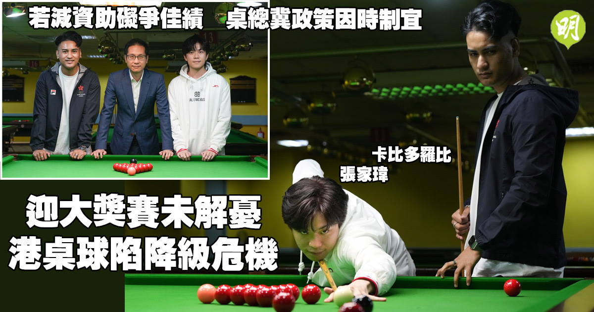 【明報專訊】香港桌球界3月喜憂交集,先是明起一連6日在啟德體藝館舉辦世界格蘭披治大獎賽,相隔35年再辦排名賽;另邊廂談論已久的香港體育學院精英項目降級危機,則在本月底到達大限,至今了無音信。英式及美式桌球兩名港隊年輕代表張家瑋與卡比多羅比(Robbie),同稱港將佳績有賴體院支援,資助銳減恐令桌球發展舉步維艱。中國香港桌球總會主席羅永聰則嘆對現狀無可奈何,促請政府檢視政策與時並進。