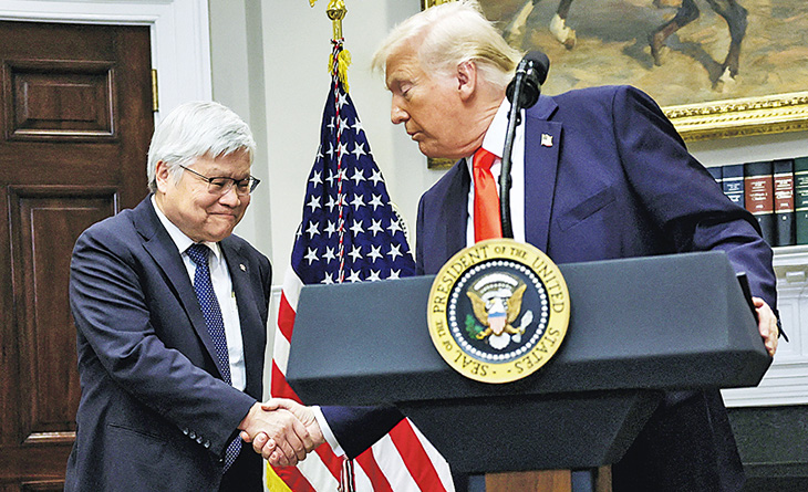 特朗普昨表示,建設晶片產業關乎美國經濟及國家安全,而台灣幾乎壟斷了這個市場,台積電在美國的擴張計劃,正是其關稅威脅發揮作用的證據。他說:「如果他們在台灣生產晶片,然後把晶片運到美國,他們將面臨25%、30%或50%的關稅……稅率只會愈來愈高,在美國生產就不會有關稅。」台積電股價昨天在台灣股市跌了2%。美國前任拜登政府推出《晶片法》,透過補貼推動美國半導體產業發展,並承諾向台積電提供66億美元資助。在特朗普重返白宮後,明顯以關稅取代補貼政策,並威脅對台灣晶片徵收100%關稅,促使台積電近期努力與美方協商。