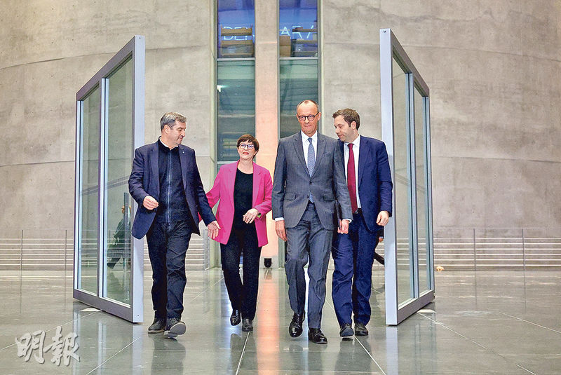 中右派的基民盟/基社盟(CDU/CSU)組成的聯盟黨上月勝出大選,將與社民黨組聯合政府。默茨周二與基社盟領袖澤德、社民黨聯合黨魁克林拜爾及埃斯克宣布,下周向國會提交法案,將超出國內生產總值(GDP)1%的國防開支豁免在「債務煞車」限制之外,意味容許政府隨時增加武裝部隊開支而不受憲法條款限制。3黨亦計劃放寬現有對州政府的債務規則,允許各州借貸額度相當於GDP的0.35%,以進一步提升經濟表現。