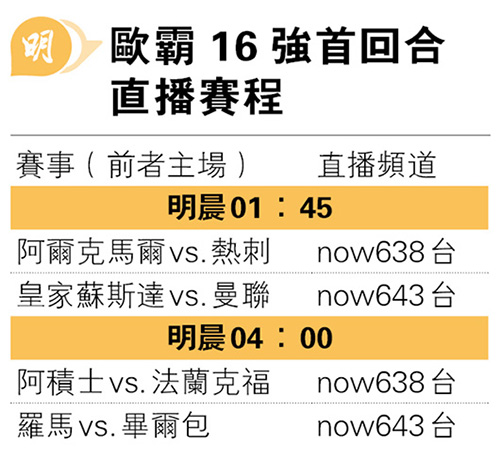 【明報專訊】今季英超兩大落難豪門曼聯及熱刺,明晨將在歐霸盃16強首回合齊齊作客出擊,分別惡鬥西甲球隊皇家蘇斯達及荷甲代表阿爾克馬爾。兩軍近日皆受傷疲困擾下,前線大將海倫及孫興慜的作用尤其重要。