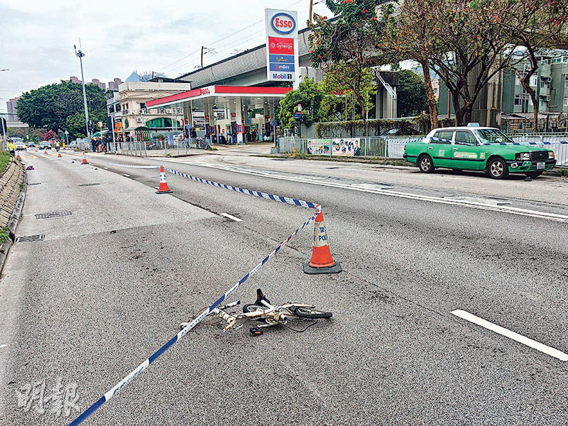 現場消息稱,當時單車由藍地大街行人過路處由右至左駛出,而的士在快線行駛,懷疑有人衝燈肇禍。現場所見,被撞單車被撞至解體,行人過路處遺一灘血迹,飯壺、環保袋、外套等散落一地。的士右邊擋風玻璃破裂,在距離撞車地點對開約30米路面留下一條長長的煞車痕。