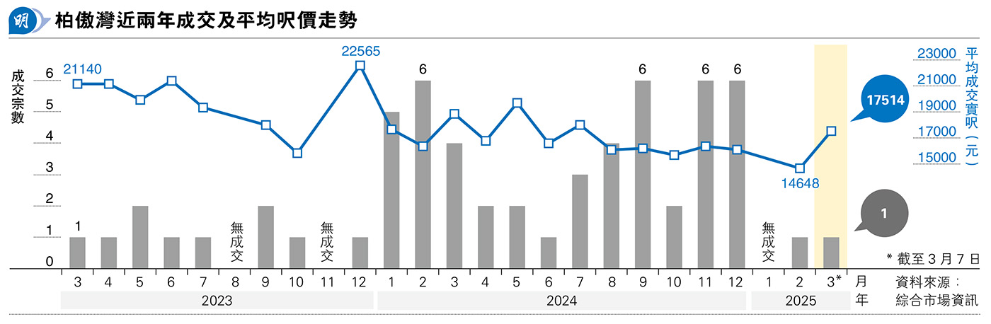【明報專訊】新《財政預算案》於2月底出台後,市場氣氛轉趨明朗,部分地區二手交投回暖。鄰近荃灣西站的半新盤柏傲灣,較早時錄得3月份首宗二手成交,而住宅租金持續向上,令「供平過租」重現,屋苑亦錄得租客入市個案。晉誠地產高級營業經理鄧錦雄表示,柏傲灣第1座中低層D室,實用1038方呎4房1套間隔、望海景,新近以1818萬元獲區內租客承接、折合實呎17,514元。