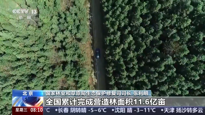 國家林業和草原局生態保護修復司司長張利明表示,黨的十八大以來,國家林草局持續開展大規模國土綠化行動,全國累計完成營造林面積11.6億畝,成為全球增綠最快最多的國家。