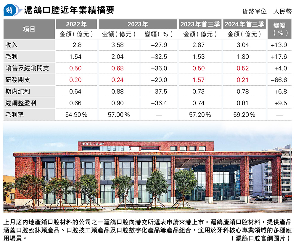 【明報專訊】北上睇牙,港人已相當熟悉,至少付費時不用治了牙痛卻換來「肉痛」。內地牙醫產業鏈近年已發展相當成熟,上月底內地產銷口腔材料的公司之一滬鴿口腔(下簡稱:「滬鴿」)向港交所遞表申請來港上市,中金及星展為聯合保薦人。滬鴿為進軍資本市場已拼搏多年,自2017年於新三板除牌後,一直再計劃上市,由內地創業板、科創板都曾敲門,惟均無果而終,至今年終來到香港。