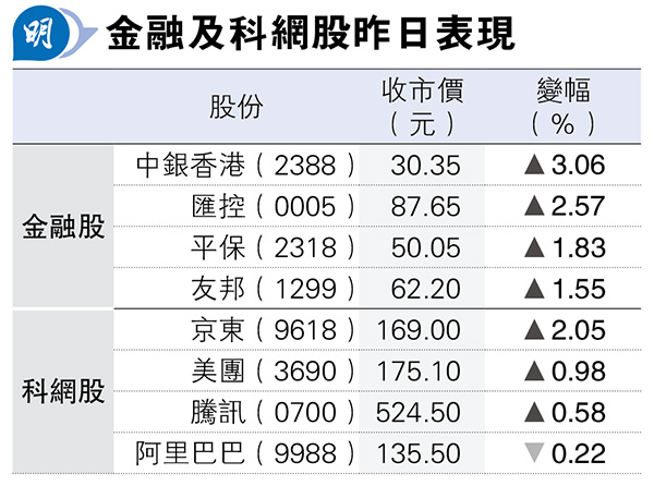 恒指高開266點,內地公布首兩月工業增加值、零售及固投數據均勝預期,大市升幅擴大,最多升392點,高見24,352點,但其後升幅收窄,午後更縮至只升117點,低見24,077點,收市升185點,報24,145點。恒指連升兩日,累計升682點。國指升0.6%,收報8928點;科指高開低走,收報5872點,跌0.1%。