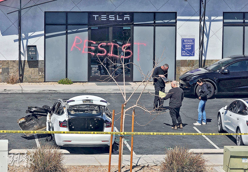 聯邦調查局(FBI)周二表示,正調查近期多宗Tesla充電站及陳列室等被破壞事件,包括拉斯維加斯周一深夜有Tesla陳列室及服務中心內最少5輛車被破壞(圖),以及密蘇里州堪薩斯城Tesla服務中心同日晚上有兩架Cybertruck損毁。邦迪在聲中明表示,司法部會繼續調查,並對參與襲擊及幕後協調與資助這些犯罪的人施以嚴厲懲罰。