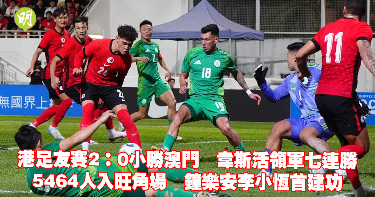友賽|港足2:0小勝澳門5464人入場 韋斯活領軍七連勝 鐘樂安李小恆首建功 (21:53)