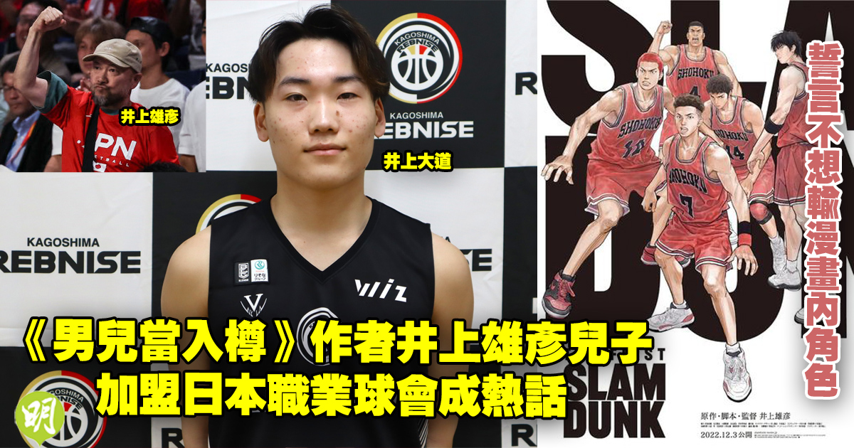 日本職籃B聯盟(B.LEAGUE)第2級球隊鹿兒島列布尼斯(鹿児島レブナイズ)前日(18日)宣布,以「特別指定球員」簽入著名動漫《男兒當入樽》(Slam Dunk)作者井上雄彥的19歲長子井上大道,合約預計直至今個賽季完結,這筆簽約亦立刻成為熱話。