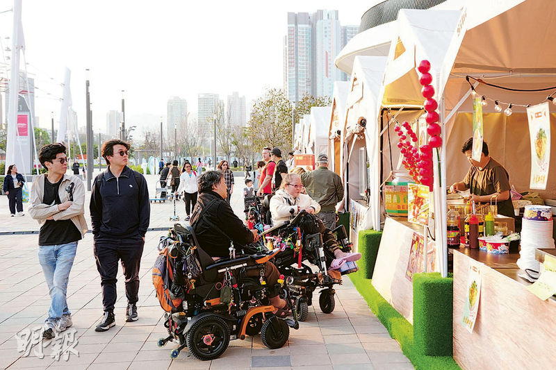 【明報專訊】啟德體育園月初開幕,首個「啟德美食海灣嘉年華」昨日開鑼。本報記者傍晚到場觀察,入夜後人流逐漸增多,不少市民攜同寵物到場,拿着美食及啤酒「打卡」。體育園下周末舉辦七人欖球賽,有攤檔率先推出期間限定商品,包括名為「Rugby 7」的手工黑啤,以及意大利香腸Salami口味的芝士蛋糕,冀招徠外國遊客。