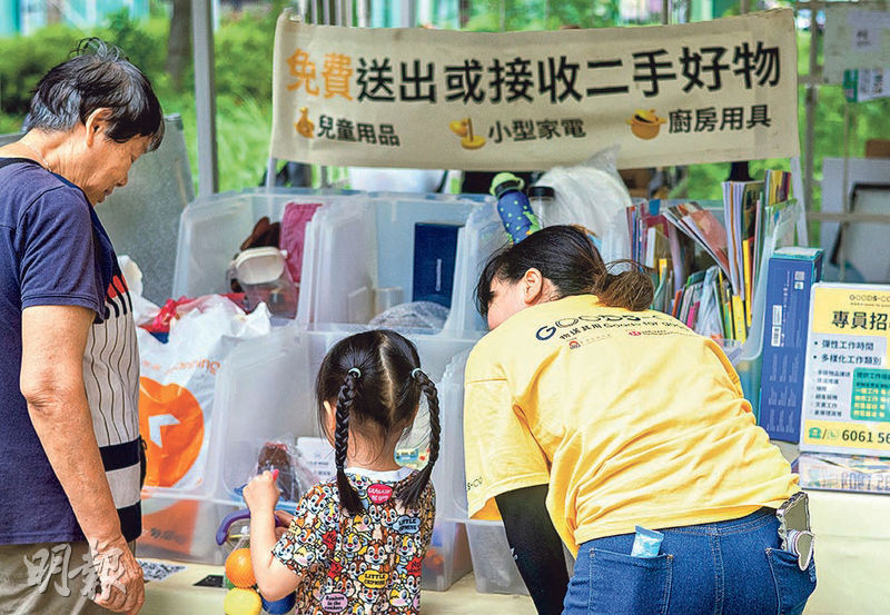 到咗4月17號,聖雅各福群會會喺南昌社區客廳舉行「復活節轉物會」,將捐贈品轉贈畀社區客廳會員,減輕基層者經濟負擔。當日亦設有遊戲攤位,希望加深街坊對環保嘅認識。