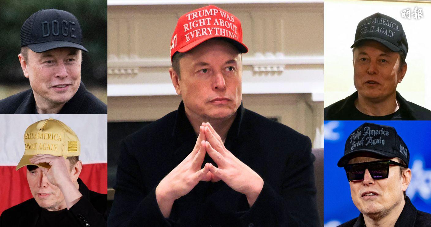 馬斯克以往不論為特朗普競選站台、出席公開活動,甚至在白宮橢圓形辦公室內,也會戴着印有支持特朗普字句的帽子示人。翻查馬斯克出席活動的照片,他最少有五頂與支持特朗普或DOGE相關的帽,三頂印有不同字型的「Make America Great Again」,一頂印有「DOGE」,有黑有紅,甚至曾出現金色帽。(法新社/Daily Beast)