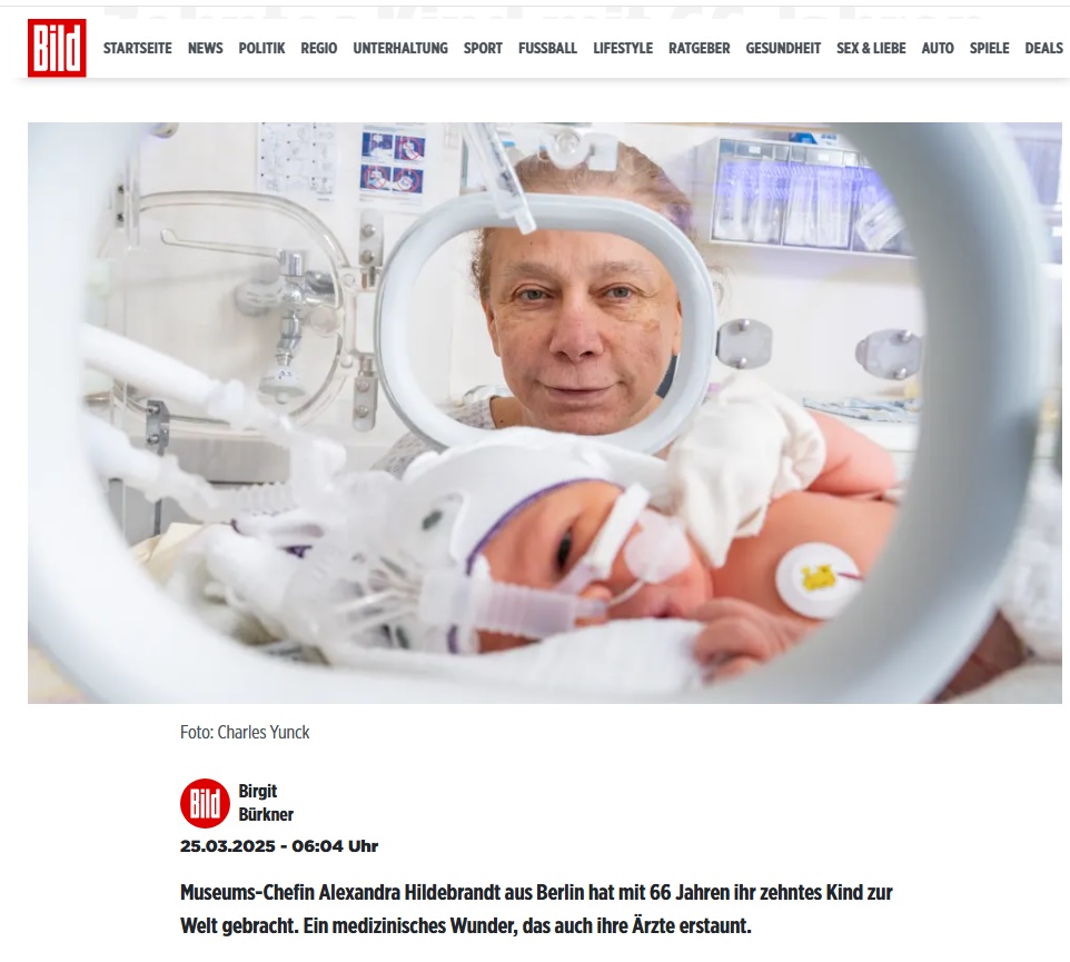 綜合德國《圖片報》(Bild)等媒體報道,這次是希爾德布蘭特的第8次剖腹產。這次她懷孕37周,上周三在柏林的醫院剖腹產下一名健康男嬰,體重3550克,身長50厘米。