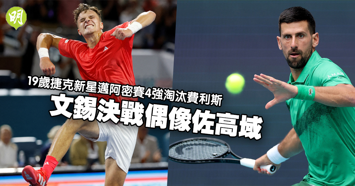 網球|19歲捷克新星文錫首闖ATP世巡決賽 邁阿密賽決戰偶像佐高域 (20:09)