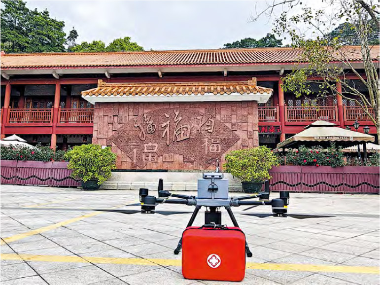 【明報專訊】AED(自動體外心臟除顫器)覆蓋率居全國第一的深圳,上月在5處郊野公園設立無人機AED配送站試點,一旦發生緊急情况,市民可透過掃描附近急救點的二維碼呼叫無人機。搭載AED和急救包的無人機5分鐘內可抵達半徑4公里內的地方,有效覆蓋範圍約50平方公里,可大大提升急救效率。不僅如此,無人機還可運送急救血液、移植用器官,直升機則可轉運病人,搭建出「空中生命通道」。