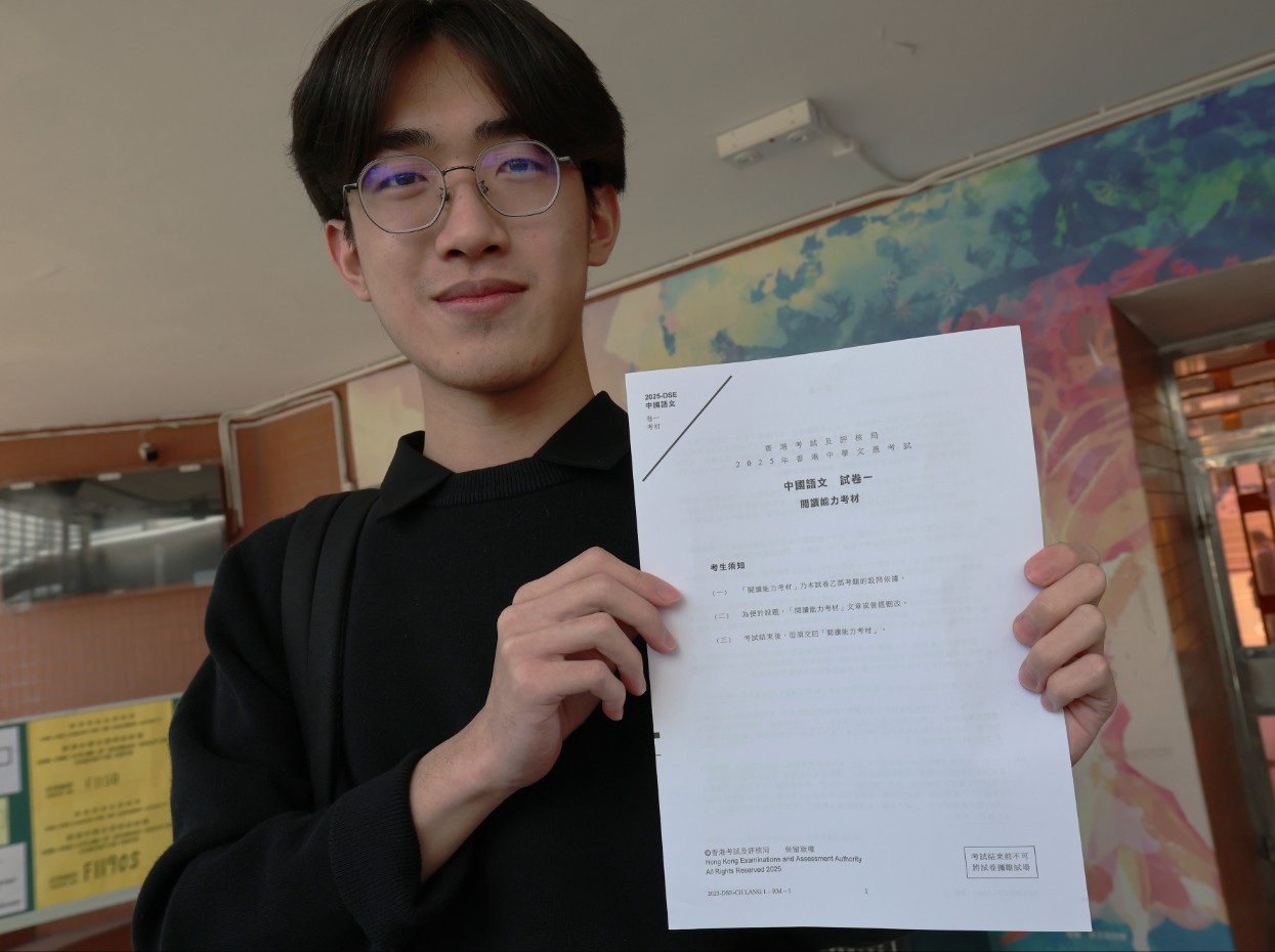 另一考生Alex則認為中文科較往年易,鬆一口氣說,「至少唔洗鬧教育局,係常人可以處理,唔似《第九味》。」他認同文言文較易理解,不是「妖魔鬼怪」,今晚將溫習明天開考的英文,笑說「終於唔洗再儒家、道家,可以歸家!」