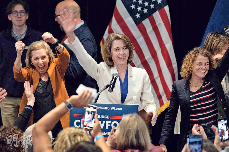 【明報專訊】美國威斯康星州周二(1日)舉行州最高法院法官選舉,被視為對總統特朗普及其高級顧問馬斯克支持度的公投。雖然馬斯克擲重金為保守派候選人希梅爾助選,但最終由民主黨支持的自由派法官克勞福德獲勝,令自由派法官人數在該州最高法院中繼續保持4比3的多數優勢,而這對審理墮胎權以至重新劃定國會選區等關鍵案件非常重要。