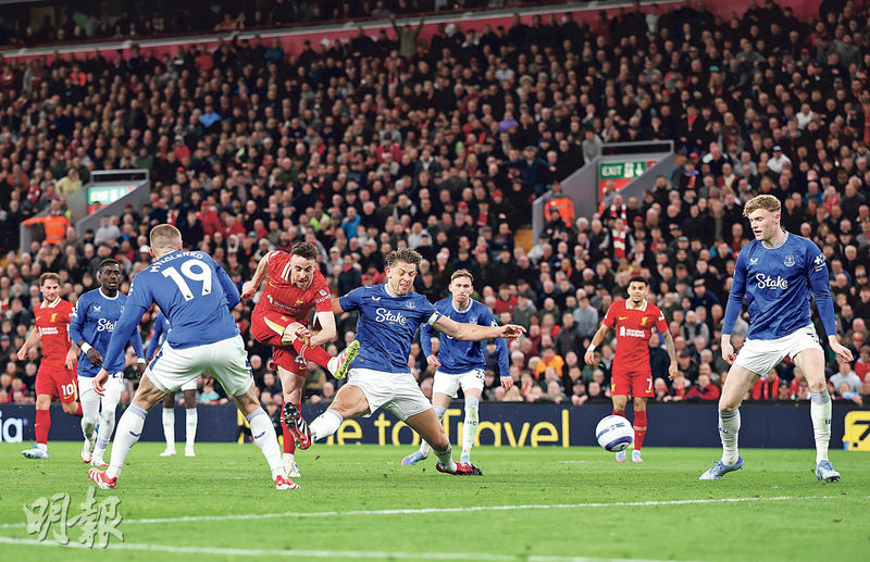 利物浦上月中先後在歐聯16強及英格蘭聯賽盃決賽,不敵巴黎聖日耳門和紐卡素,接連失落兩項錦標,卻藉接着的國際賽檔期而得以喘息,昨在英超重新出發面對鄰會愛華頓取得主導權,鋒將穆罕默德沙拿先在28分鐘頭槌攻門被敵軍門將比克福特沒收。「拖肥」前鋒比圖比東卡5分鐘後快速突擊,其間把握「紅軍」中堅華基爾雲迪積克解圍失誤「踢空氣」長驅直進,最後射門中柱彈出。兩軍上半場終以互交白卷結束。