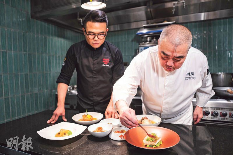 【明報專訊】當問及張一峰與曾超敬二人關係時,連續2年為北京「潮上潮」潮菜餐廳獲得北京米芝蓮3星的張一峰不假思索地回答:「是師父!」曾超敬立即糾正:「朋友啦,是無所不談的朋友!」或許,任何單一稱謂都難以定義他們之間的情誼。1970年代入行,現任明閣(灣仔)廚藝總監的曾超敬,從不以「徒弟」二字稱呼後輩,只把他們視為並肩作戰的好拍檔;而曾於皇御園跟他一起共事的張一峰,至今仍然感謝其無私分享:「我也希望能夠做到曾師傅的大師風範。」粵菜的傳承,不僅於廚藝的傳授,更在於代代相傳的處世之道。