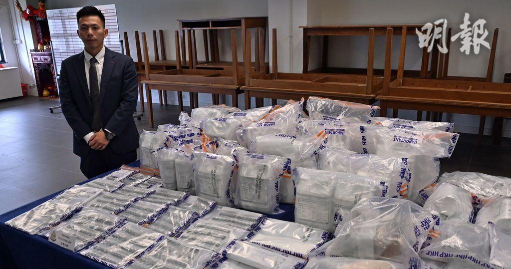行動期間,新界北總區反三合會行動組,於前日(8日)突擊搜查上水金錢村一村屋單位,撿獲約450克依托咪酯粉末、712粒含有太空油毒品煙彈、約60公升香油及一批製毒工具,包括煮食爐、量杯、針筒、電子磅及大量未使用的煙彈。
