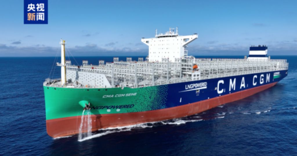 中船集團滬東中華營銷部部長王佳穎表示,這條船是全球最先進的,特點是以液化天然氣作為動力的來源,更清潔、更環保,而且它的裝箱量也是全世界最大的級別,大大提高了海運的效率和經濟效能。(央視新聞)
