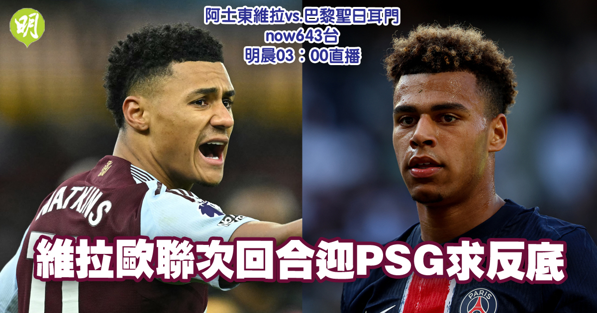 歐聯|維拉迎PSG求反底 或棄拉舒福特改屈堅斯攻堅 (19:35)