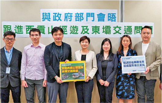 鄭泳舜會後話,水務署有望喺五一前完成進入東壩嘅萬宜路避車處嘅延長工程,方便對頭車輛互相讓路。但佢認為,雖然當局已喺長假期間增加往返東壩嘅小巴數量,「山徑黑的」問題仍需改善,部分的士嘅行駛速度亦惹唔少投訴,認為倘五一期間欠改善,可考慮限制的士進入禁區,實行「出一輛進一輛」措施,確保交通順暢。李世榮補充,近年好多國家都喺旅遊景點引入電動觀光車,唔單止能提升遊客嘅觀光體驗,仲有效分流交通,形容麥理浩徑第一段嘅地勢非常適合引入。