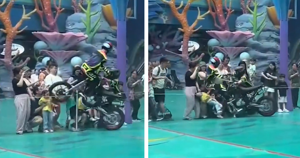 短片顯示,電單車在表演期間突然失控衝向警戒線外,多人被撞倒在地上,其中一名家長蹲抱着小朋友,被電單車車輪撞到倒地。發布片段的網民稱意外發生在22日下午,事故發生後,受傷的小朋友被工作人員抱離現場。