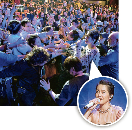 【明報專訊】梁詠琪(Gigi)《時間遇上我們》世界巡迴演唱會日前於拉斯維加斯及多倫多舉行,是她相隔22年再到多倫多開個唱。她表示多年沒在這兩個地方開騷,感覺歌迷跟她一樣興奮,「好多歌迷專程來看我演出,我覺得可以落台跟大家握手拉近距離,感覺好難得」。當她落台時歌迷一湧而上,場面一度失控,雖有兩名外籍保安「護駕」,但她專心與歌迷握手愈行愈遠,差點找不到路走回舞台,場面搞笑。她稱一向享受演唱會握手環節,見大家忙拿手機拍片又要跟她握手,少點技術都不可,所以她會慢慢行。