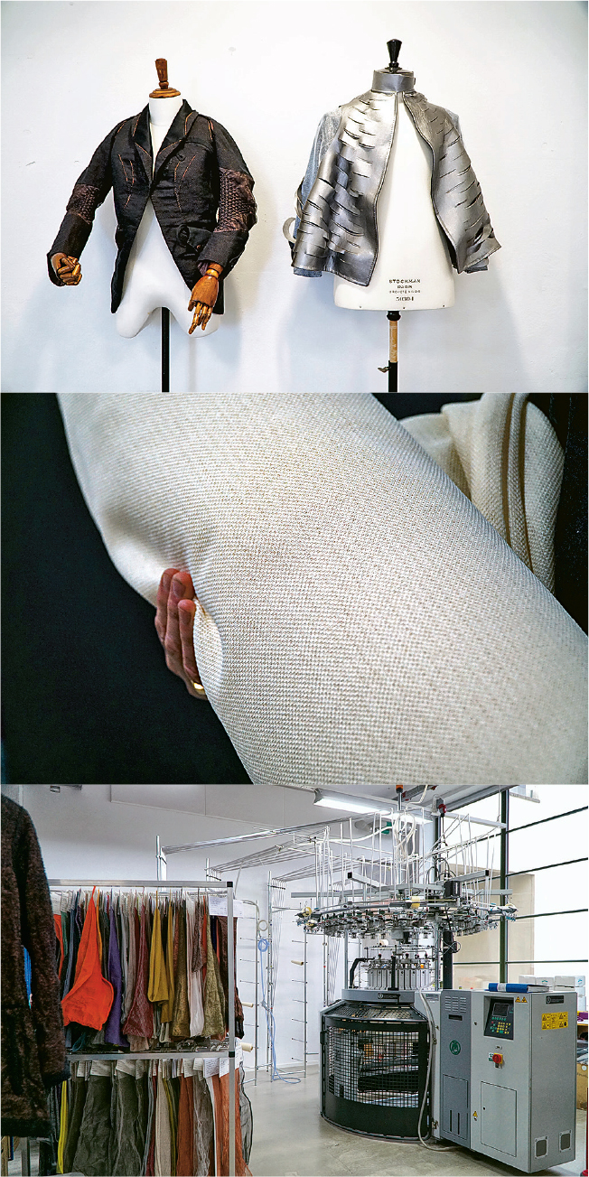 相比於着重工藝的TIG,SST則着眼於高科技設備。Science Park Borås和SST布料發展策略專員Susanne Nejderås在介紹學院時,展示了不少布料研發物料如紙製布料(中圖),屬於學校Forest Fabrics企劃的一部分。校內設施可謂一站式,由素材實驗室到紡線、織布機均齊備,亦有少見的金屬線紡織機(下圖,右)。整個學府設有7個實驗室,研究員和設計師可租用空間研發自家作品,成為瑞典的重要研發基地,以及學生與業界交流的據點。校內另一重要空間是Do-tank Center,以推動循環經濟為本,備有不少高科技設施,如能夠進行大量專業攝影的自動化攝影工作室Styleshoots,能於刺繡時同時為繡線染色的Coloreel等,可見兩所學院均是當地時裝業發展的重要動力。●