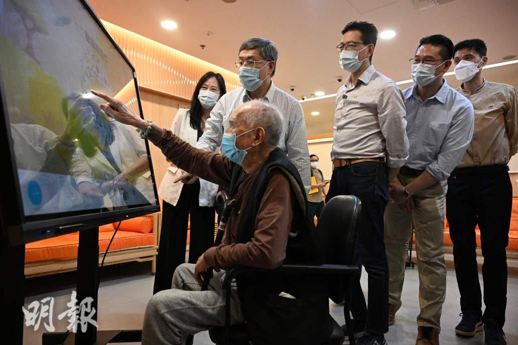 卓永興於院舍大堂、用膳區及活動中心等與職員交流,了解他們日常工作情况。卓亦與院友互動,體驗院舍的觸控螢幕電視遊戲設備。他亦體驗物理治療器材,了解治療師如何協助長者紓緩痛症。