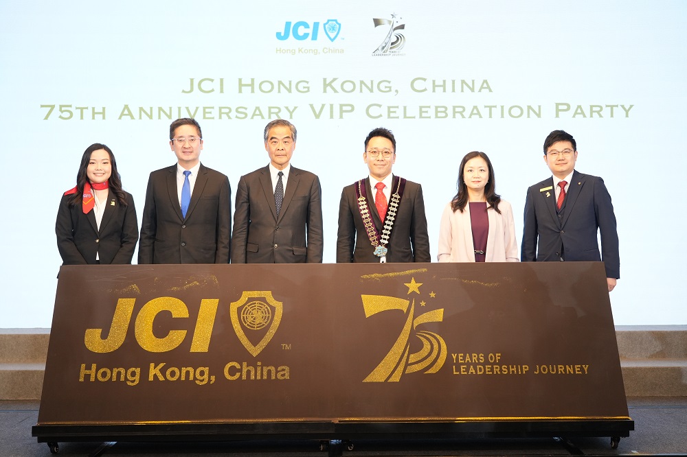 國際青年商會中國香港總會 (JCI HK) 昨(2日)舉行75周年慶祝酒會,回顧及展示本會多年來在培育青年領袖、促進社區發展及推動國際交流方面所取得的成就。全國政協副主席梁振英主禮,逾300位本港政商界領袖雲集,包括中聯辦青年工作部副部長萬寧、商務及經濟發展局副局長陳百里等。