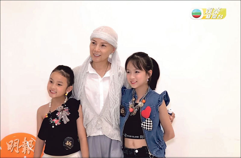 【明報專訊】吳忻熹(前名吳文忻)患乳癌惡化至第四期,癌細胞變異去到尾龍骨,早前因白血球指數不達標而暫停化療,仍堅持親自照顧女兒陳芊彤和陳施辰。日前兩女參加小學組別「演藝模特大賽初賽」,吳忻熹到場為她們打氣,教二人在台上表現自信的方法。