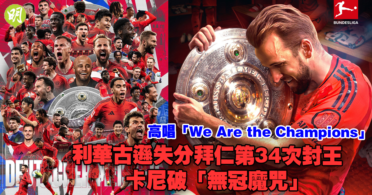 德甲|利華古遜失分拜仁第34次封王 卡尼破「無冠魔咒」高唱「We Are the Champions」 (16:45)