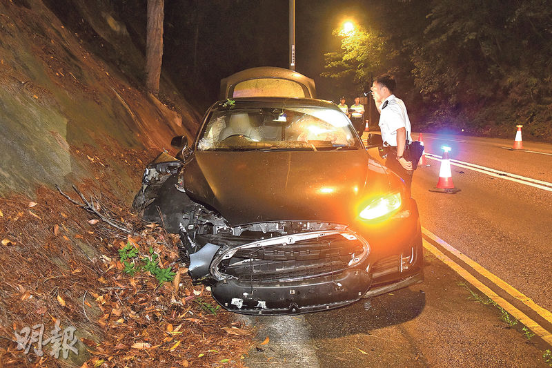 【明報專訊】長沙灣大埔公路前晚深夜發生致命車禍。一輛Tesla私家車懷疑失控,越過對面行車線,迎頭猛撞一輛電單車,六旬鐵騎士重創昏迷,送院搶救不治。涉事Tesla司機涉危駕被捕,西九龍總區交通部特別調查隊正調查意外原因。