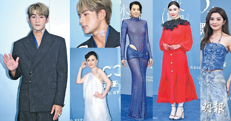 【明報專訊】《水舞間》在澳門重演,昨晚一眾巨星現身觀禮,包括韓星鄭智薰(Rain)、劉嘉玲、張柏芝、魏浚笙(Jeffrey)、李冰冰、舒淇、陳慧琳、蔡卓妍(阿Sa)、方力申和胡杏兒等。張柏芝前夫謝霆鋒上月假啟德主場館開騷,二人所生的兒子謝振軒(Lucas)和謝振南(Quintus)現身捧場,顏值成焦點,令身為母親的她亦成熱話。她昨日穿上鮮紅色連身裙到場,活動前透過大會表示不受訪。魏浚笙拍戲頸部受傷後首露面,重提意外經過猶有餘悸,慶幸傷勢不嚴重,毋須縫針。胡杏兒為老公李乘德被影到在夜店攬女解畫,稱對方行為屬正常社交,否認婚變傳聞。