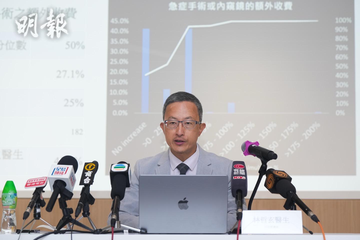 政府正計劃提出多項措施提升私院收費透明度。調查中亦顯示,大腸鏡套餐式收費中位數、以及第90個百分位數差距達8成,第90個百分位數收達2萬元。林哲玄指,差距愈大,透明度的需要自然愈高,以便患者作出明智的知情選擇。