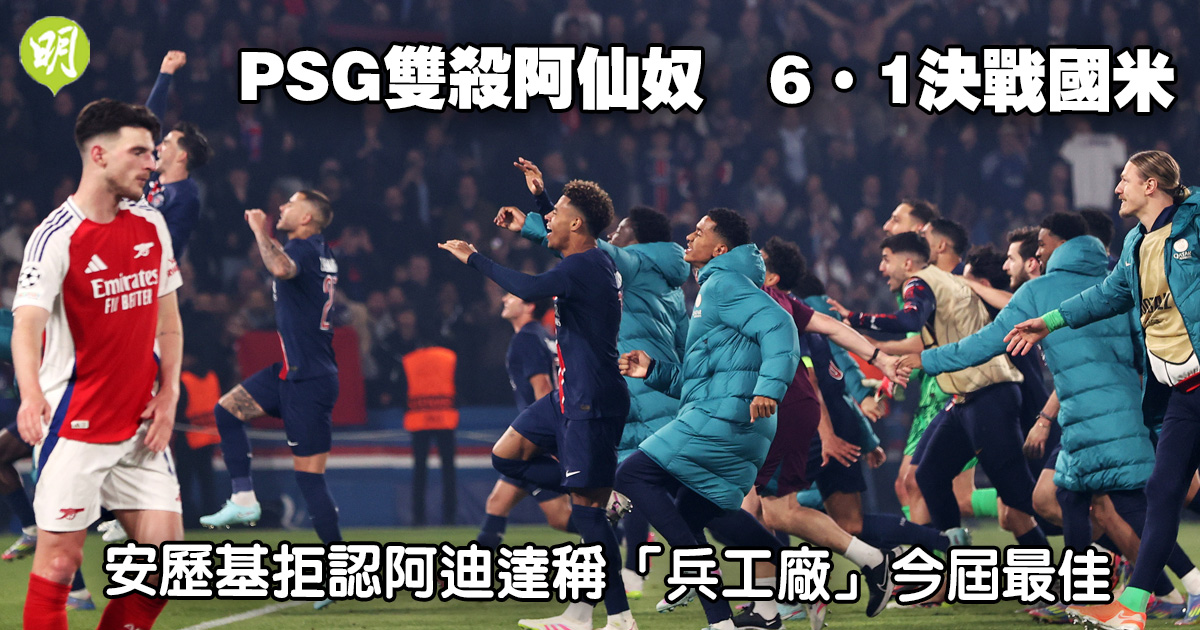 接連失落英超及國內盃賽錦標的阿仙奴,今晨(8日)在歐聯4強次回合未能收復首回合落後1球的劣勢,作客以1:2再負法甲的巴黎聖日耳門(PSG),總比數1:3落敗出局。至於今季四殺英超球隊後坐亞望冠的PSG,將在下月1日凌晨決戰國際米蘭,亦是相隔32年後,再由法甲及意甲球隊爭標。