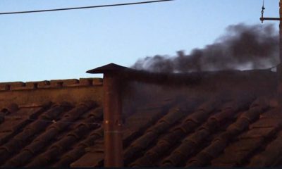 在周四上午投票中,沒人當選教宗,西斯汀聖堂的煙囪在香港時間周四下午大約5時54分冒出黑煙。