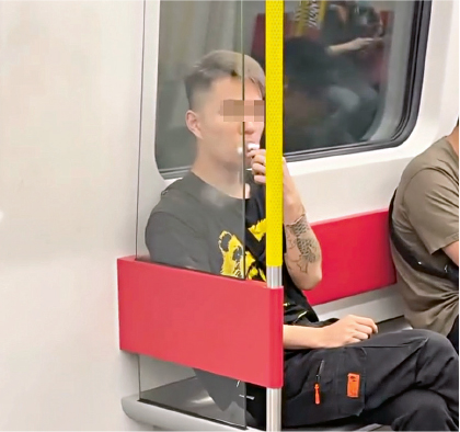 【明報專訊】網上近日流傳影片,一名染金髮年輕男子在港鐵屯馬線列車吸電子煙,隨後神志不清及抽搐,有網民懷疑事涉太空油。港鐵回覆表示,事發於本周三(7日)晚上,當時有派員跟隨,並制止對方吸煙。